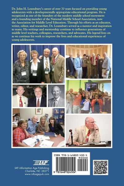 In April 2020, middle level education lost one of its most ardent and influential advocates with the passing of Dr. John H. Lounsbury. His career of more than 70 years focused on providing young adolescents with a developmentally appropriate educational program. He is recognized as one of the founders of the modern middle school movement and a founding member of the National Middle School Association, now the Association for Middle Level Education. Through his efforts as an educator, writer, editor, and researcher, John served as a mentor and inspiration to many. John's writings and mentorship continue to influence generations of middle level teachers, colleagues, researchers, and advocates. His legend lives on as we continue his work to improve the lives and educational experiences of young adolescents. This tribute volume is a collection of stories, anecdotes, vignettes, and defining moments that the contributors want to share about Dr. John Lounsbury.