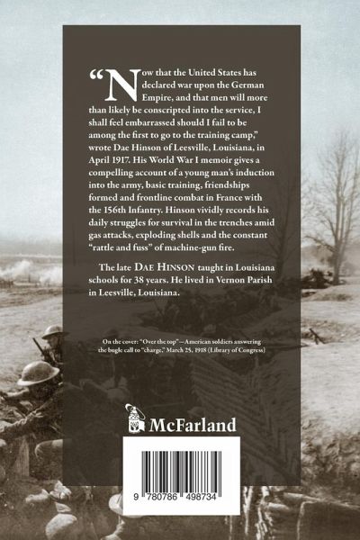 "Now that the United States has declared war upon the German Empire, and that men will more than likely be conscripted into the service, I shall feel embarrassed should I fail to be among the first to go to the training camp," wrote Dae Hinson of Leesville, Louisiana, in April 1917. His World War I memoir gives a compelling account of a young man's induction into the army, basic training, friendships formed and frontline combat in France with the 156th Infantry. Hinson vividly records his daily struggles for survival in the trenches amid gas attacks, exploding shells and the constant "rattle and fuss" of machine-gun fire.