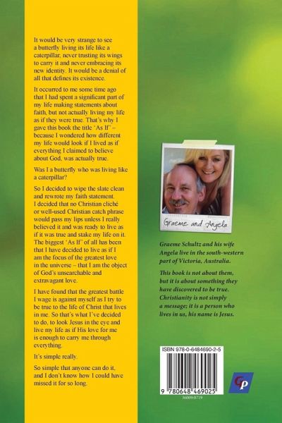 It would be very strange to see a butterfly living its life like a caterpillar, never trusting its wings to carry it and never embracing its new identity. It would be a denial of all that defines its existence. It occurred to me some time ago that I had spent a significant part of my life making statements about faith, but not actually living my life as if they were true. That's why I gave this book the title 'As If' - because I wondered how different my life would look if I lived as if everything I claimed to believe about God, was actually true. Was I a butterfly who was living like a caterpillar? So I decided to wipe the slate clean and rewrote my faith statement. I decided that no Christian cliché or well-used Christian catch phrase would pass my lips unless I really believed it and was ready to live as if it was true and stake my life on it. The biggest 'As If' of all has been that I have decided to live as if I am the focus of the greatest love in the universe - that I am the object of God's unsearchable and extravagant love. I have found that the greatest battle I wage is against myself as I try to be true to the life of Christ that lives in me. So that's what I've decided to do, to look Jesus in the eye and live my life as if His love for me is enough to carry me through everything. It's simple really. So simple that anyone can do it, and I don't know how I could have missed it for so long.