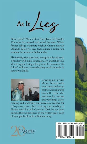 Why is Jack O'Shea, a PGA Tour player, in Orlando? The tour has moved well north by now. When former college teammate Michael Grason, now an Orlando detective, sees Jack outside a restaurant window, he means to find out why. His investigation turns into a magical ride and read. This story will make you laugh, cry, and fall in love all over again. Using a lively cast of characters, "As It Lies" will have you celebrating small triumphs in your own family. Growing up in rural Maine, blessed with seven sisters and seven brothers, he separated himself from the madness by reading and watching. Later, reading and watching continued as a teacher for thirty-two years. Since retiring and moving to Florida with his wife Carey in 2003, he has been putting those experiences on the written page. Each of my eight books tells a different story.