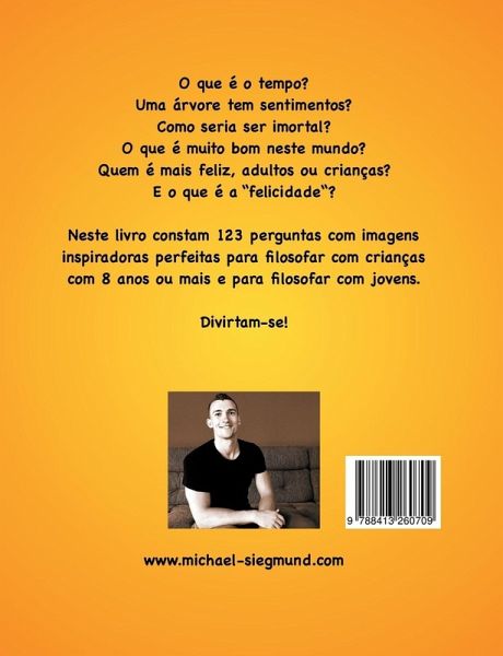 O que é o tempo? Uma árvore tem sentimentos? Como seria ser imortal? O que é muito bom neste mundo? Quem é mais feliz, adultos ou crianças? E o que é a "felicidade"? Neste livro constam 123 perguntas com imagens inspiradoras perfeitas para filosofar com crianças com 8 anos ou mais e para filosofar com jovens. Divirtam-se!