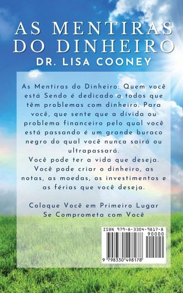 As Mentiras do Dinheiro: Quem você está Sendo é dedicado a todos que têm problemas com dinheiro. Para você, que sente que a dívida ou problema financeiro pelo qual você está passando é um grande buraco negro do qual você nunca sairá ou ultrapassará. Você pode ter a vida que deseja. Você pode criar o dinheiro, as notas, as moedas, os investimentos e as férias que você deseja. Coloque Você em Primeiro Lugar Se Comprometa com Você