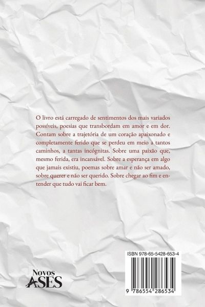 O livro está carregado de sentimentos dos mais variados possíveis, poesias que transbordam em amor e em dor. Contam sobre a trajetória de um coração apaixonado e completamente ferido que se perdeu em meio a tantos caminhos, a tantas incógnitas. Sobre uma paixão que, mesmo ferida, era incansável. Sobre a esperança em algo que jamais existiu, poemas sobre amar e não ser amado, sobre querer e não ser querido. Sobre chegar ao fim e entender que tudo vai ficar bem.