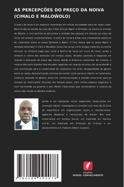 O preço da noiva é um requisito importante em muitas sociedades para um rapaz casar. Recorrendo ao estudo de caso das tribos étnicas Ngoni e Tumbuka, na província oriental da Zâmbia, o livro partilha as perceções e atitudes das pessoas em relação ao preço da noiva nos tempos contemporâneos. O preço da noiva é ainda uma componente essencial do casamento entre os povos Tumbuka e Ngoni. O livro realça que os povos Ngoni e Tumbuka entendem Cimalo e Malöolo (preço da noiva) como artigos materiais ou outros animais, ou dinheiro pago pelo noivo à família da noiva em troca da noiva, sendo o dinheiro o centro das atenções nos tempos atuais. Atitudes positivas e negativas em relação à alteração do preço das noivas devido à dinâmica capitalista. No entanto, a maioria dos participantes teve atitudes negativas em relação ao preço da noiva devido à sua contribuição para a instabilidade do casamento nos lares, desigualdades de género entre os casais, desvalorização contínua da mulher como parceira inferior no casamento, violência baseada no género, divórcios, comercialização e pressão emocional para os homens se mobilizarem recursos nos tempos atuais. Com muitos aspetos negativos, o livro recomenda ao governo e aos líderes tradicionais que reconsiderem o sistema de preços das noivas na Zâmbia moderna.