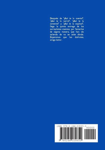 Aquí va la quinta entrega de cuentos breves. Se trata de unos veinte relatos, a cual más surrealista, pero basados en la estricta realidad en que nos movemos y existimos, que no en vano se ha dicho que nuestra vida común es más surrealista que cualquier novela del mejor de los locos visionarios.