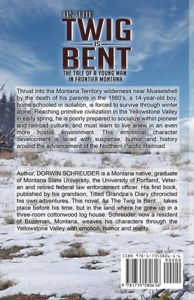 Thrust into the Montana Territory wilderness near Musselshell by the death of his parents in the 1880's, a 14-year-old boy, home schooled in isolation, is forced to survive through winter alone. Reaching primitive civilization in the Yellowstone Valley in early spring, he is poorly prepared to socialize within pioneer and railroad culture, and must learn to live anew in an even more hostile environment. This emotional character development is laced with suspense, humor and history around the advancement of the Northern Pacific Railroad.