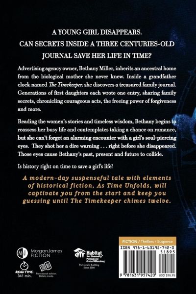 Bethany Miller's past, present and future collide when she inherits a generational family journal spanning three centuries, is drawn into solving mysteries about her biological family’s past, and witnesses a desperate, silent plea from a girl’s soul-piercing eyes…right before the girl disappears.