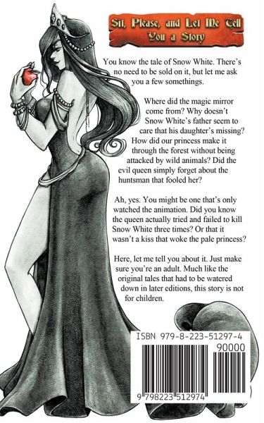 You know the tale of Snow White. There's no need to be sold on it. But let me ask you a few somethings. Where did the magic mirror come from? Why doesn't Snow White's father seem to care that his daughter's missing? How did our princess make it through the forest without being attacked by wild animals? Did the evil queen simply forget about the huntsman that fooled her? Ah, yes. You might be one that's only watched the animation. Did you know the queen actually tried and failed to kill Snow White three times? Or that it wasn't a kiss that woke the pale princess? Here, let me tell you about it. Just make sure you're an adult. Much like the original tales that had to be watered down in later editions, this story is not for children.