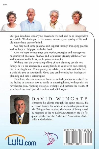 Our goal is to have you or your loved one live well and be as independent as possible. We desire you to feel secure, enhance your quality of life and ultimately have peace of mind. You may need some guidance and support through this aging process, and we hope to help you with this book. Also, we hope to encourage you to plan, strategize and manage your or your loved ones care, finances and legal issues utilizing all the services and resources available to you in your community. We have seen the devastating effects of non planning can do to a family, be it a car accident to a young family, to your loved one entering into a nursing home. Consequently, we advise you to take action before a crisis hits you or your family. Good care can be costly, but inadequate planning and care is catastrophic. Planning strategies, we hope, will increase the vitality of your loved ones and provide comfort and relief to you.