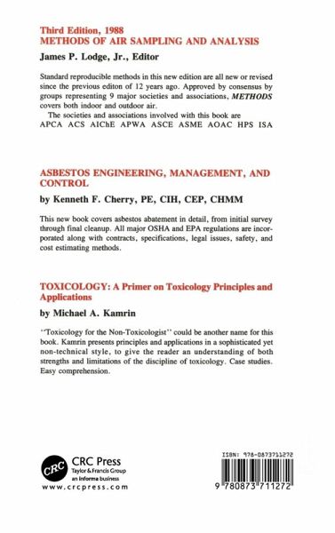 This book is intended as a single source which presents the viewpoints, rules, and recommended practices for asbestos engineering management and control as defined by the U.S. Environmental Protection Agency, the Occupational Safety and Health Administration, and the National Asbestos Council.