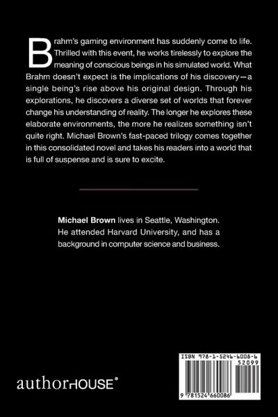 Brahm’s gaming environment has suddenly come to life. Thrilled with this event, he works tirelessly to explore the meaning of conscious beings in his simulated world. What Brahm doesn’t expect is the implications of his discovery—a single being’s rise above his original design. Through his explorations, he discovers a diverse set of worlds that forever change his understanding of reality. The longer he explores these elaborate environments, the more he realizes something isn’t quite right. Michael Brown’s fast-paced trilogy comes together in this consolidated novel and takes his readers into a world that is full of suspense and is sure to excite.