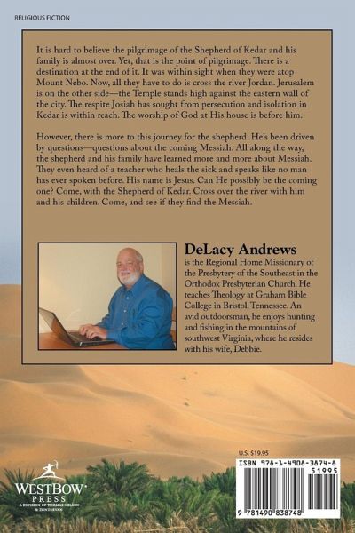 It is hard to believe the pilgrimage of the Shepherd of Kedar and his family is almost over. Yet, that is the point of pilgrimage. There is a destination at the end of it. It was within sight when they were atop Mount Nebo. Now, all they have to do is cross the river Jordan. Jerusalem is on the other side-the Temple stands high against the eastern wall of the city. The respite Josiah has sought from persecution and isolation in Kedar is within reach. The worship of God at His house is before him. However, there is more to this journey for the shepherd. He's been driven by questions-questions about the coming Messiah. All along the way, the shepherd and his family have learned more and more about Messiah. They even heard of a teacher who heals the sick and speaks like no man has ever spoken before. His name is Jesus. Can He possibly be the coming one? Come, with the Shepherd of Kedar. Cross over the river with him and his children. Come, and see if they find the Messiah.
