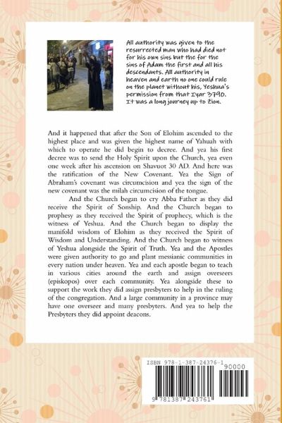 And it happened that after the Son of Elohim ascended to the highest place and was given the highest name of Yahuah with which to operate he did begin to decree. And yea his first decree was to send the Holy Spirit upon the Church, yea even one week after his ascension on Shavuot 30 AD. And here was the ratification of the New Covenant. Yea the Sign of Abraham's covenant was circumcision and yea the sign of the new covenant was the milah circumcision of the tongue. And the Church began to cry Abba Father as they did receive the Spirit of Sonship. And the Church began to prophesy as they received the Spirit of prophecy, which is the witness of Yeshua. And the Church began to display the manifold wisdom of Elohim as they received the Spirit of Wisdom and Understanding. And the Church began to witness of Yeshua alongside the Spirit of Truth. Yea and the Apostles were given authority to go and plant messianic communities in every nation under heaven.