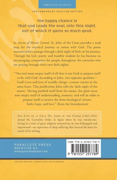 This volume represents a contemporary English edition of John's rarely published work, "Ascent of Mount Carmel," a commentary on his entire spiritual vision.