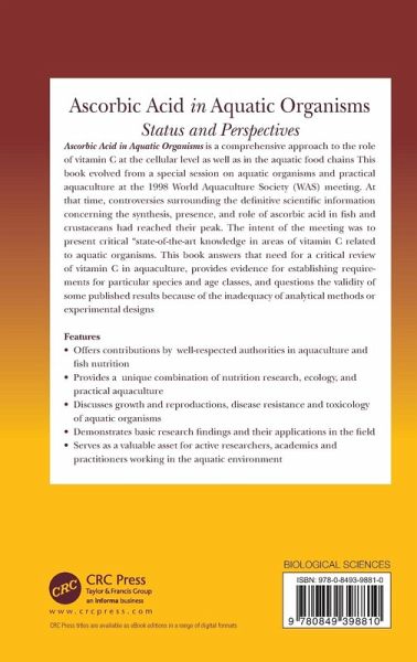 We are just beginning to discover the importance of vitamin C in the health of natural and man-made ecosystems. Synthesis of ascorbic acid is well understood, but algae as the only source of ascorbate in the aquatic food pyramid has not been explored. There is an expanding field of the culture of aquatic organisms that demand formulated feeds to best meet their requirements for health, growth, and reproduction. With over 100 species now cultured for human consumption, the question arises as to whether we have reliable information for the dietary needs for vitamin C for even a small percentage of these organisms. A comprehensive approach to the role of vitamin C at the cellular level as well as in the aquatic food chains, this book discusses growth and reproduction, disease resistance, and toxicology of aquatic organisms. Ascorbic Acid in Aquatic Organisms was written as the offshoot of a special session on aquatic organisms and practical aquaculture at the 1998 World Aquaculture Society (WAS) meeting. This book reviews the research already available and identifies new directions for research. It is a unique combination of good nutrition research, ecology, and practical aquaculture (for instance brine shrimp enrichment). This interdisciplinary volume will appeal to marine fish culturists, aquatic biologists, comparative and evolutionary cellular physiologists, and environmental toxicologists.