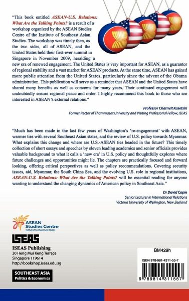 This volume is the result of a workshop that had the objective to ascertain the facts of ASEAN-U.S. relations and the specific matter of the United States' engagement with ASEAN and East Asia, for possible use by ASEAN in the discussions at the next ASEAN-U.S. Summit Meeting and other ASEAN-U.S. policy forums. The book covers several elements of this relationship, ranging from U.S. military presence in the region, cooperation on maritime security, and recent U.S. policy towards Myanmar, to progress on technical cooperation.