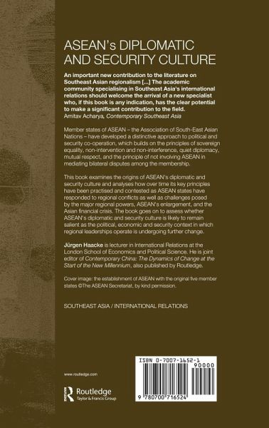 Introduction1. Early Origins of the 'ASEAN way': The struggle for respect and sovereignty2. Post-War Origins of the 'ASEAN way': From estrangement and conflict to regional reconciliation and accommodation3. ZOPFAN and the ASEAN Regional Forum: The extramural dimension of ASEAN's struggle for security and recognition4. The Cambodia Conflict and the 'ASEAN way': The struggle for a pristine interpretation of principles5. China's Relations with ASEAN: Challenging or reinforcing the 'ASEAN way'?6. The U.S. Challenge to the 'ASEAN way'7. The Concept of Flexible Engagement and the Practice of Enhanced Interaction: Intramural challenges to the 'ASEAN way'8. ASEAN's Diplomatic and Security Culture after the Hanoi Summit: Has 'old' thinking been dominating 'new' practices? Conclusion: On the prospects of ASEAN's diplomatic and security cultureBibliography