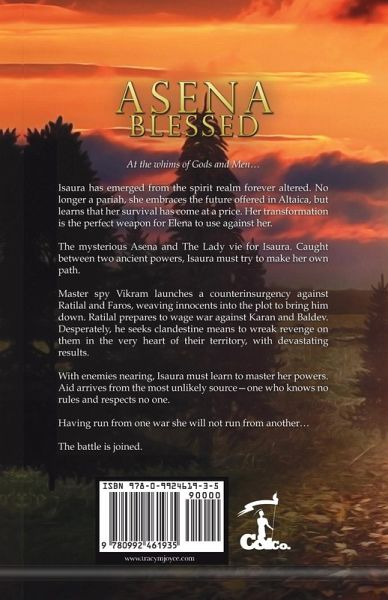 Isaura has emerged from the spirit realm forever altered. No longer a pariah, she embraces the future offered in Altaica, but learns that her survival has come at a price. Her transformation is the perfect weapon for Elena to use against her. The mysterious Asena and The Lady vie for Isaura. Caught between two ancient powers, Isaura must try to make her own path. Master spy Vikram launches a counterinsurgency against Ratilal and Faros, weaving innocents into the plot to bring him down. Ratilal prepares to wage war against Karan and Baldev. Desperately, he seeks clandestine means to wreak revenge on them in the very heart of their territory, with devastating results. With enemies nearing, Isaura must learn to master her powers. Aid arrives from the most unlikely source-one who knows no rules and respects no one. Having run from one war she will not run from another... The battle is joined.