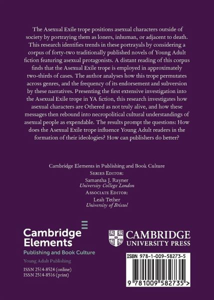 The Asexual Exile trope positions asexual characters outside of society by portraying them as loners, inhuman, or adjacent to death. This research identifies trends in these portrayals by considering a corpus of 42 traditionally published novels of Young Adult fiction featuring asexual protagonists.