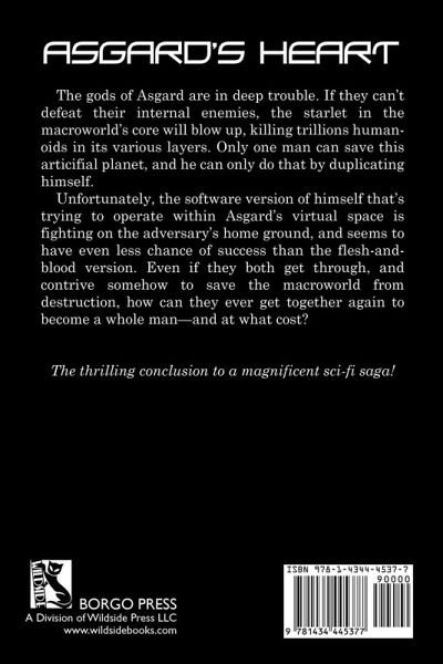 The gods of Asgard are in deep trouble. If they can't defeat their internal enemies, the starlet in the macroworld's core will blow up, killing trillions humanoids in its various layers. Only one man can save this articifial planet, and he can only do that by duplicating himself. Unfortunately, the software version of himself that's trying to operate within Asgard's virtual space is fighting on the adversary's home ground, and seems to have even less chance of success than the flesh-and-blood version. Even if they both get through, and contrive somehow to save the macroworld from destruction, how can they ever get together again to become a whole man--and at what cost? The thrilling conclusion to a magnificent sci-fi saga!