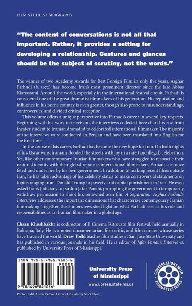 The winner of two Academy Awards for Best Foreign Film in only five years, Asghar Farhadi (b. 1972) has become Iran's most prominent director since the late Abbas Kiarostami. Around the world, especially in the international festival circuit, Farhadi is considered one of the great dramatist filmmakers of his generation. His reputation and influence in his home country is even greater, though also prone to misunderstandings, controversies, and divided critical reception. This volume offers a unique perspective into Farhadi's career in several key respects. Beginning with his work in television, the interviews collected here chart his rise from theater student to Iranian dramatist to celebrated international filmmaker. The majority of the interviews were conducted in Persian and have been translated into English for the first time. In the course of his career, Farhadi has become the new hope for Iran. On both nights of his Oscar wins, Iranians flooded the streets with joy in a rare (and illegal) celebration. Yet, like other contemporary Iranian filmmakers who have struggled to reconcile their national identity with their global repute as international filmmakers, Farhadi is at once feted and under fire by his own government. In addition to making recent films outside Iran, he has taken advantage of his celebrity status to make controversial statements on topics ranging from Donald Trump to poverty and capital punishment in Iran. He even asked Iran's Judiciary to pardon Jafar Panahi, prompting the government to temporarily withdraw permission to shoot his renowned 2011 film A Separation. Asghar Farhadi: Interviews addresses the important dimensions that characterize contemporary Iranian filmmaking. Together, these interviews shed light on what Farhadi sees as his role and responsibilities as an Iranian filmmaker in a global age.