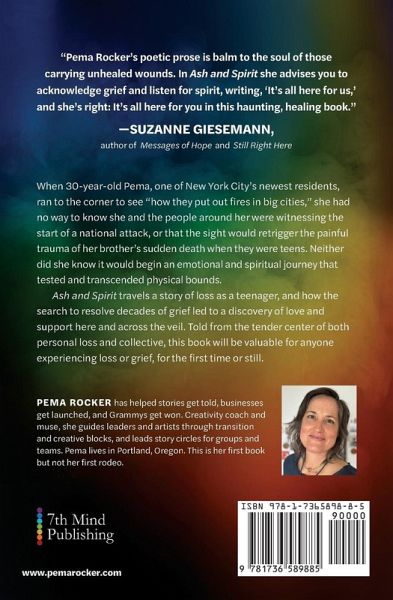 A Story to Feel and Heal Grief Together When 30-year-old Pema, one of New York City's newest residents, ran to the corner to see "how they put out fires in big cities," she had no way to know she and the people around her were witnessing the start of a national attack, or that the sight would retrigger the painful trauma of her brother's sudden death when they were teens. Neither did she know it would begin an emotional and spiritual journey that tested and transcended physical bounds. Ash and Spirit travels a story of loss as a teenager, and how the search to resolve decades of grief grew into an exploration of love and support here and across the veil. A narrative collage constructed of interviews, messaging chats, journal entries, pictures, and personal stories that take place over thirty years, Ash and Spirit, represents the dislocated nature of memory and trauma recall. Vivid and detailed moments in time stitch together to tell a whole story of many losses into one for the sake of healing individual and collective grief. Told from the tender center of both personal loss and collective, this book will be valuable for anyone experiencing loss or grief, for the first time or still. Note: The 2024 print edition is expanded with new updates and additional resources.