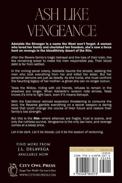 Adelaide the Stranger is a name the West won't forget. A woman who loved her family and cherished her freedom, she's now a force bent on revenge in the bloodthirsty desert of the Rim. After the Revere family's tragic betrayal and the loss of their train, the few remaining swear to make the men responsible pay. Their blood debt is far from settled. In the mining penal colony, Adelaide haunts the streets, stalking the men who took everything from her and killed her sister. But her personal demons are just as deadly. As she hunts, she must confront the haunting legacy of her mother--a ghost she can no longer outrun. Tesla the Widow, hiding with old friends, refuses to remain in the shadows any longer. When Adelaide's ransom note arrives, Tesla knows it's time to fight back, even if it means betrayal. With the East-blood railroad expansion threatening to consume the land, the Reveres gamble everything on a secret weapon--a daring heist that could change the course of their future and restore their family's lost strength. But this is the Rim--where alliances are fragile, trust is scarce, and only the ruthless survive. Vengeance is the only law here, and revenge comes at a steep price. Let it be dark. Let it be bloody. Let it be the season of reckoning.