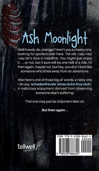Well howdy-do, stranger? Aren't you a cheeky one, looking for spoilers over here. Tsk tsk. I say nay! I say let's dive in headfirst. You might just enjoy it... or not, but it sure will be one hell of a ride. Or then again, maybe not, but hey, you don't look like someone who shies away from an adventure. Also here's one of those big ol' words, a nasty one I do say: schadenfreude [shaa·duhn·froy·duh]: A malicious enjoyment derived from observing someone else's suffering. That one may just be important later on. But then again...