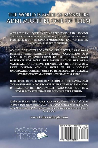 The world is made of monsters. Adni might be one of them. After the Evil Queen Kadia razed Warshard, leaving thousands homeless or dead, many of Salander's people fled to the Cinder Mountains, east of the six kingdoms, seeking refuge. Adni, the daughter of a treasure hunter, has always despised her father's bizarre occupation and loathes every family trip in search of riches. Always desperate for more, her father shoves her off a waterfall to retrieve treasure at the bottom of a lake. Instead, Adni is swept up in a violent underwater current, only to be rescued by Julian, a mysterious woman with a flirtatious smile. Desperate to flee the oppression of her family and the mountains, Adni escapes with Julian to Salander in search of her real father - who might just be a worse monster than the man she left behind.