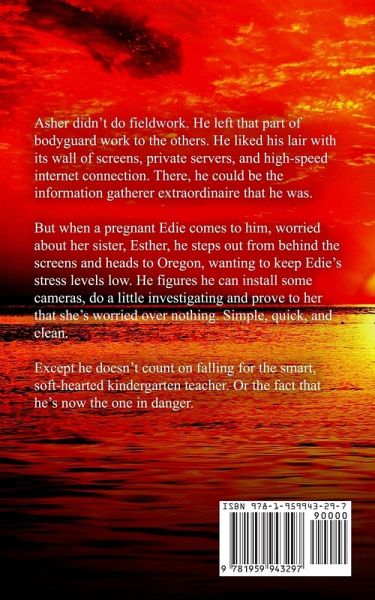 Asher didn't do fieldwork. He left that part of bodyguard work to the others. He liked his lair with its wall of screens, private servers, and high-speed internet connection. There, he could be the information gatherer extraordinaire that he was. But when a pregnant Edie comes to him, worried about her sister, Esther, he steps out from behind the screens and heads to Oregon, wanting to keep Edie's stress levels low. He figures he can install some cameras, do a little investigating and prove to her that she's worried over nothing. Simple, quick, and clean. Except he doesn't count on falling for the smart, soft-hearted kindergarten teacher. Or the fact that he's now the one in danger.