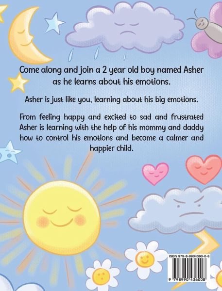 Come along and join a 2 year old boy named Asher as he learns about his emotions. Asher is just like you, learning about his big emotions. From feeling happy and excited to sad and frustrated Asher is learning with the help of his mommy and daddy how to control his emotions and become a calmer and happier child.