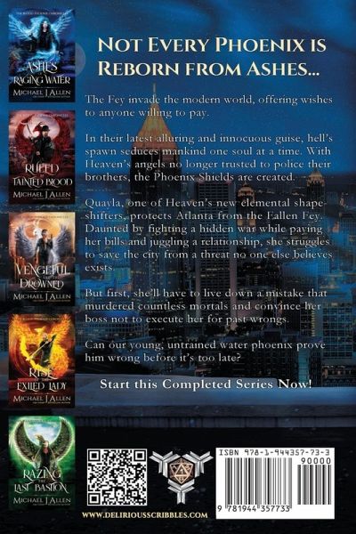 The Fey invade the modern world, offering wishes to anyone willing to pay. In their latest alluring and innocuous guise, hell's spawn seduces mankind one soul at a time. With Heaven's angels no longer trusted to police their brothers, the Phoenix Shields are created. Quayla, one of Heaven's new elemental shapeshifters, protects Atlanta from the Fallen Fey. Daunted by fighting a hidden war while paying her bills and juggling a relationship, she struggles to save the city from a threat no one else believes exists. But first, she'll have to live down a mistake that murdered countless mortals and convince her boss not to execute her for past wrongs. Can our young, untrained water phoenix prove him wrong before it's too late?