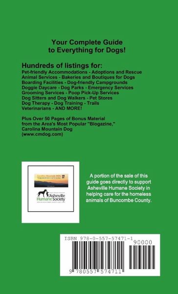 The new Second Edition of the Asheville Doggie Guide has everything for dogs -- hundreds of listings for Buncombe and Henderson Counties -- plus over 50 pages of bonus material from Carolina Mountain Dog (www.cmdog.com), the area's leading "blogazine" for dog lovers! A portion of every sale of this guide goes directly to support Asheville Humane Society in helping care for the homeless animals of Buncombe County.