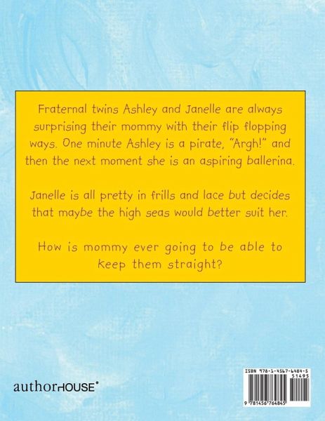 Fraternal twin's Ashley and Janelle are always surprising their mommy with their flip flopping ways. One minute Ashley is a pirate, "Argh!" and then the next moment she is an aspiring ballerina. Janelle is all pretty in frills and lace but decides that maybe the high seas would better suit her. How is mommy ever going to be able to keep them straight?