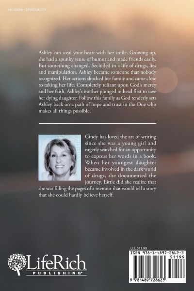 Ashley can steal your heart with her smile. Growing up, she had a spunky sense of humor and made friends easily. But something changed. Secluded in a life of drugs, lies and manipulation, Ashley became someone that nobody recognized. Her actions shocked her family and came close to taking her life. Completely reliant upon God's mercy and her faith, Ashley's mother plunged in head first to save her dying daughter. Follow this family as God tenderly sets Ashley back on a path of hope and trust in the One who makes all things possible.