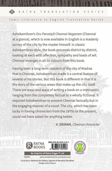 Ashokamitran's Oru Parvaiyil Chennai Nagaram (Chennai at a glance), which is now available in English is a masterly survey of the city by the master himself. In classic Ashokamitran style, the book proceeds district by district, looking at each with affection, sympathy and loads of wit. Chennai emerges in all its colours from this book. Having been a long-term resident of the city of Madras that is Chennai, Ashokamitran made it a central feature of several of his stories. But this book is different in that it is the story of the various areas that make up the city itself. There are ways and…mehr