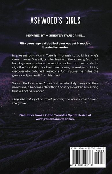 The Troubled Spirits Series are stand-alone paranormal murder mysteries inspired by true crimes. Fifty years ago a diabolical plan was set in motion. It ended in murder. In present day, Adam Tate is in a rush to build his wife's dream home. She's ill, and he lives with the looming fear that her days are numbered in months rather than years. As he digs the foundation for their new home, he makes a chilling discovery-long-buried skeletons. On impulse, he hides the grave and pushes it from his mind. When Adam and his wife Holly move into their new home six months later, it becomes clear that Adam has awoken something that will not be silenced. Step into a story of betrayal, murder, and voices from beyond the grave.