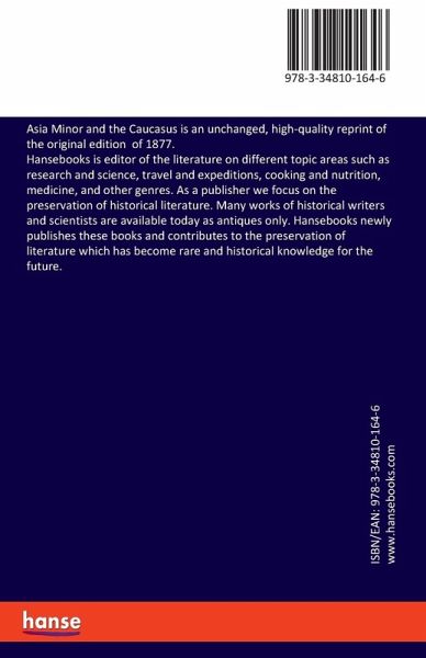 Asia Minor and the Caucasus is an unchanged, high-quality reprint of the original edition of 1877.Hansebooks is editor of the literature on different topic areas such as research and science, travel and expeditions, cooking and nutrition, medicine, and other genres. As a publisher we focus on the preservation of historical literature. Many works of historical writers and scientists are available today as antiques only. Hansebooks newly publishes these books and contributes to the preservation of literature which has become rare and historical knowledge for the future.