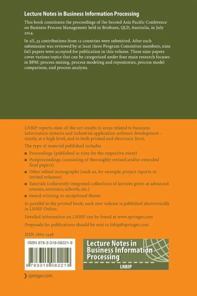 This book constitutes the proceedings of the Second Asia Pacific Conference on Business Process Management held in Brisbane, QLD, Australia, in July 2014.