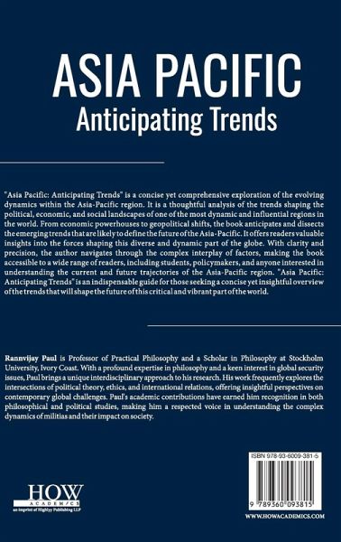 "Asia Pacific: Anticipating Trends" is a concise yet comprehensive exploration of the evolving dynamics within the Asia-Pacific region. It is a thoughtful analysis of the trends shaping the political, economic, and social landscapes of one of the most dynamic and influential regions in the world. From economic powerhouses to geopolitical shifts, the book anticipates and dissects the emerging trends that are likely to define the future of the Asia-Pacific. It offers readers valuable insights into the forces shaping this diverse and dynamic part of the globe. With clarity and precision, the author navigates through the complex interplay of factors, making the book accessible to a wide range of readers, including students, policymakers, and anyone interested in understanding the current and future trajectories of the Asia-Pacific region. "Asia Pacific: Anticipating Trends" is an indispensable guide for those seeking a concise yet insightful overview of the trends that will shape the future of this critical and vibrant part of the world.