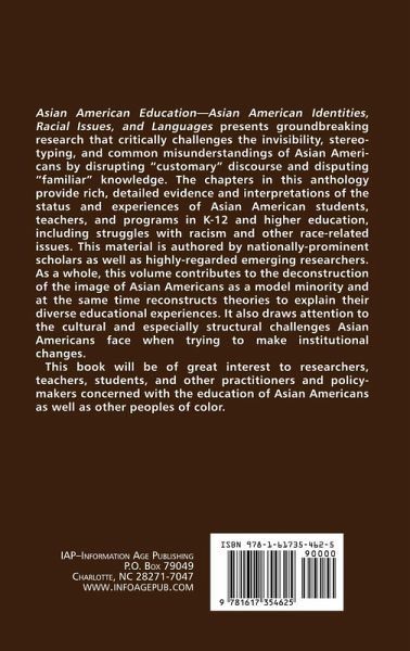 A volume in Research on the Education of Asian Pacific Americans Series Editors Clara C. Park, California State University, Northridge, Russell Endo, University of Colorado, and Xue Lan Rong, University of North Carolina, Chapel Hill (Sponsored by SIG-Research on the Education of Asian and Pacific Americans of the American Educational Research Association and National Association for Asian and Pacific American Education) Asian American Education--Asian American Identities, Racial Issues, and Languages presents groundbreaking research that critically challenges the invisibility, stereotyping, and common misunderstandings of Asian Americans by disrupting "customary" discourse and disputing "familiar" knowledge. The chapters in this anthology provide rich, detailed evidence and interpretations of the status and experiences of Asian American students, teachers, and programs in K-12 and higher education, including struggles with racism and other race-related issues. This material is authored by nationally-prominent scholars as well as highly-regarded emerging researchers. As a whole, this volume contributes to the deconstruction of the image of Asian Americans as a model minority and at the same time reconstructs theories to explain their diverse educational experiences. It also draws attention to the cultural and especially structural challenges Asian Americans face when trying to make institutional changes. This book will be of great interest to researchers, teachers, students, and other practitioners and policymakers concerned with the education of Asian Americans as well as other peoples of color.
