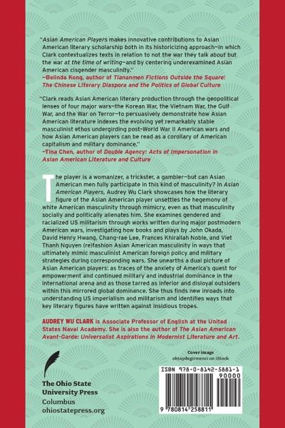 Honorable Mention, 2025 Association for Asian American Studies Book Awards, Literary Studies Category The player is a womanizer, a trickster, a gambler-but can Asian American men fully participate in this kind of masculinity? In Asian American Players, Audrey Wu Clark showcases how the literary figure of the Asian American player unsettles the hegemony of white American masculinity through mimicry, even as that masculinity socially and politically alienates him. She examines gendered and racialized US militarism through works written during major postmodern American wars, investigating how books by John Okada, David Henry Hwang, Chang-rae Lee, Frances Khirallah Noble, and Viet Thanh Nguyen (re)fashion Asian American masculinity in ways that ultimately mimic masculinist American foreign policy and military strategies during corresponding wars. She unearths a dual picture of Asian American players: as traces of the anxiety of America's quest for empowerment and continued military and industrial dominance in the international arena and as those tarred as inferior and disloyal outsiders within this mirrored global dominance. She thus finds new inroads into understanding US imperialism and militarism and identifies ways that key literary figures have written against insidious tropes.