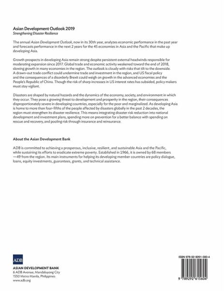 Growth in developing Asia is projected to soften to 5.7% in 2019 and 5.6% in 2020. Excluding Asia’s high-income newly industrialized economies, growth is expected to slip from 6.4% in 2018 to 6.2% in 2019 and 6.1% in 2020. As oil prices rose and Asian currencies depreciated, inflation edged up last year but remained low by historical standards. In light of stable commodity prices, inflation is anticipated to remain subdued at 2.5% in both 2019 and 2020. Risks remain tilted to the downside. A drawn-out or deteriorating trade conflict between the People’s Republic of China and the United States could undermine investment and growth in developing Asia. With various uncertainties stemming from US fiscal policy and a possible disorderly Brexit, growth in the advanced economies could turn out slower than expected, undermining the outlook for the People’s Republic of China and other economies in the region. Though abrupt increases in US interest rates appear to have ceased for the time being, policy makers must remain vigilant in these uncertain times.