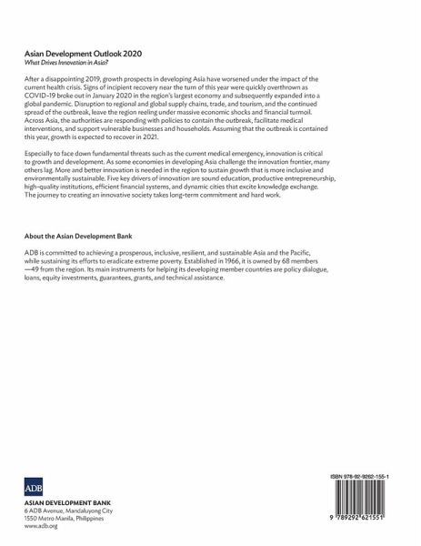 Growth in the region is expected to slow sharply to 2.2% in 2020 under the effects of the current health emergency and then rebound to 6.2% in 2021. Excluding Asia’s high-income newly industrialized economies, growth will drop from 5.7% to 2.4% this year before recovering to 6.7% next year. Headline inflation accelerated in 2019 as food prices edged up but remained low by historical standards. Inflation will climb further to 3.2% in 2020, but declining food prices in the latter half of the year will set the stage for easing inflation in 2021. Downside risks to the outlook are severe, most notably from coronavirus disease 2019 (COVID-19). In these difficult times, when challenges to growth abound, innovation is critical to inclusive and environmentally sustainable growth. While some economies in developing Asia are near or at the global innovation frontier, many others lag behind. This issue of the Asian Development Outlook includes a Special Topic: The Impact of the Coronavirus Outbreak—An Update.