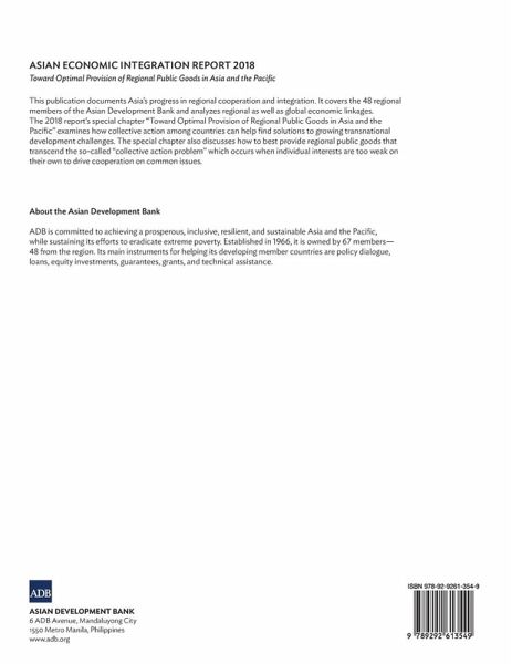 This publication documents Asia’s progress in regional cooperation and integration. It covers the 48 regional members of the Asian Development Bank and analyzes regional as well as global economic linkages. The 2018 report’s special chapter "Toward Optimal Provision of Regional Public Goods in Asia and the Pacific" examines how collective action among countries can help find solutions to growing transnational development challenges. The special chapter also discusses how to best provide regional public goods that transcend the so-called "collective action problem" which occurs when individual interests are too weak on their own to drive cooperation on common issues.