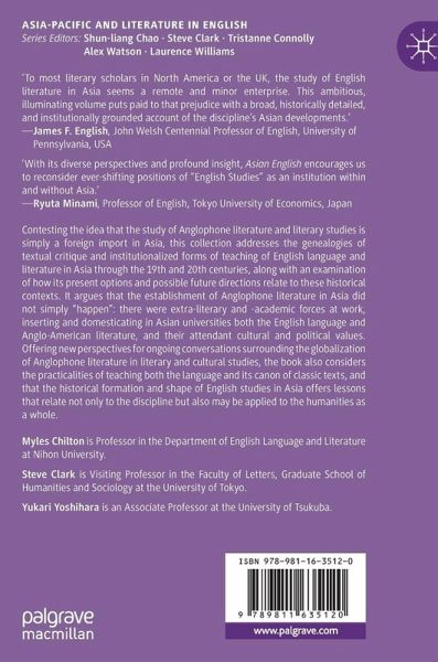 Contesting the idea that the study of Anglophone literature and literary studies is simply a foreign import in Asia, this collection addresses the genealogies of textual critique and institutionalized forms of teaching of English language and literature in Asia through the 19th and 20th centuries, along with an examination of how its present options and possible future directions relate to these historical contexts. It argues that the establishment of Anglophone literature in Asia did not simply "happen": there were extra-literary and -academic forces at work, inserting and domesticating in Asian universities both the English language and Anglo-American literature, and their attendant cultural and political values. Offering new perspectives for ongoing conversations surrounding the globalization of Anglophone literature in literary and cultural studies, the book also considers the practicalities of teaching both the language and its canon of classic texts, and that thehistorical formation and shape of English studies in Asia offers lessons that relate not only to the discipline but also may be applied to the humanities as a whole.