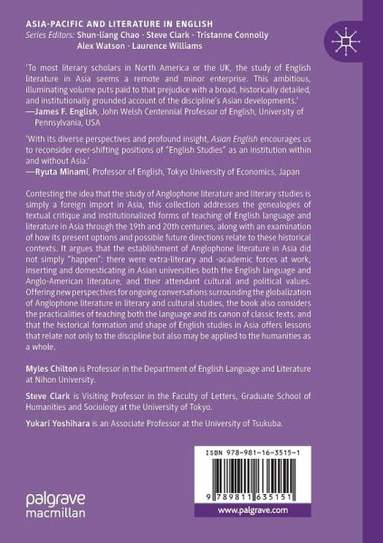 Contesting the idea that the study of Anglophone literature and literary studies is simply a foreign import in Asia, this collection addresses the genealogies of textual critique and institutionalized forms of teaching of English language and literature in Asia through the 19th and 20th centuries, along with an examination of how its present options and possible future directions relate to these historical contexts. It argues that the establishment of Anglophone literature in Asia did not simply "happen": there were extra-literary and -academic forces at work, inserting and domesticating in Asian universities both the English language and Anglo-American literature, and their attendant cultural and political values. Offering new perspectives for ongoing conversations surrounding the globalization of Anglophone literature in literary and cultural studies, the book also considers the practicalities of teaching both the language and its canon of classic texts, and that thehistorical formation and shape of English studies in Asia offers lessons that relate not only to the discipline but also may be applied to the humanities as a whole.