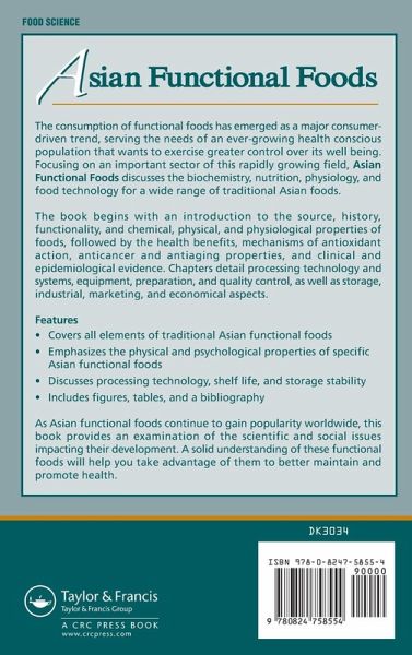 The consumption of functional foods has emerged as a major consumer-driven trend, based on the needs of an ever-growing health conscious population that wants to exercise greater control over its health. Focusing on an important sector of this rapidly growing field, Asian Functional Foods discusses the theoretical and practical aspects of functional foods found in the traditional Asian diet, from fundamental concepts of biochemistry, nutrition, and physiology to food science and technology. The book covers a wide range of topics, beginning with an introduction to the source, history, functionality, and chemical, physical, and physiological properties of traditional Asian functional foods, followed by the health benefits, mechanisms of antioxidant action, anticancer and antiaging properties, supported by clinical and epidemiological evidence. The chapter authors discuss processing technology and process systems, equipment, material preparation, food preparation, and quality control during processing. They explore stability, shelf life, and storage criteria for traditional functional food products, industrial production, home-made products, consumer and marketing issues, and social and economical impact. As Asian functional foods continue to gain popularity worldwide, a solid understanding of these functional foods will help food scientists take advantage of them to better maintain and promote health. Examining the scientific and social issues impacting their development, this book provides that understanding.