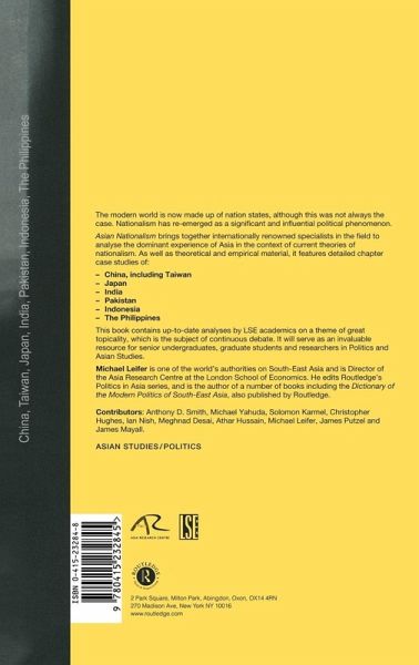 Asian Nationalism brings together internationally renowned experts in the field analysing current theories of nationalism. Featuring detailed chapter case-studies on Pakistan, China, Japan, Taiwan, India, Indonesia and the Philippines, this book provides a good balance of theoretical and empirical material. Completely up-to-date, this book will be invaluable for scholars of both Asian Studies and Politics. Key issues covered include: theories of nationalism the changing faces of Chinese nationalism Indian National Democracy the imagined community reflections on Asian nationalism.
