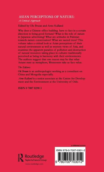 Chapter 1 Images of Nature, Ole Bruun, Arne Kalland; Chapter 2 Socio-Political Structures and the Southeast Asian Ecosystem, J. Kathirithamby-Wells; Chapter 3 Sacred Trees and Haunted Forests in Indonesia, Peter Boomgaards; Chapter 4 Taming Nature - Controlling Fertility, Stephen Sparkes; Chapter 5 Thinking through Nature in Highland Nepal, Graham E. Clarke; Chapter 6 State Intervention and Community Protest, Are Knudsen; Chapter 7 Nature in the Kalasha Perception of Life, Birgitte Glavind Sperber; Chapter 8 Nature as the Virgin Forest, Klas Sandell; Chapter 9 Fengshui and the Chinese Perception of Nature, Ole Bruun; Chapter 10 The Japanese Attitude to Nature, S. N. Eisenstadt; Chapter 11 Japanese Advertising Nature, Brian Moeran, Lise Skov; Chapter 12 Culture in Japanese Nature, Arne Kalland; Chapter 13 Nature, Religion and Cultural Identity, Poul Pedersen;